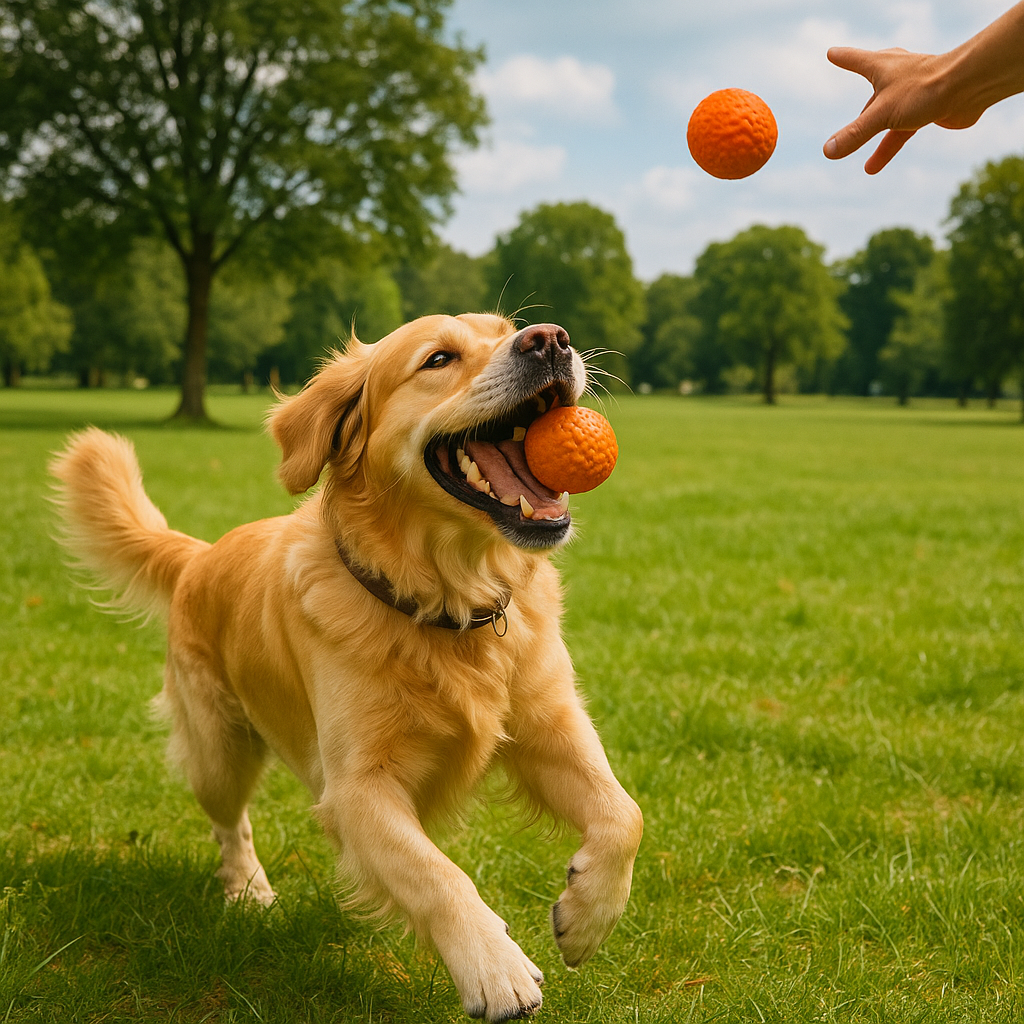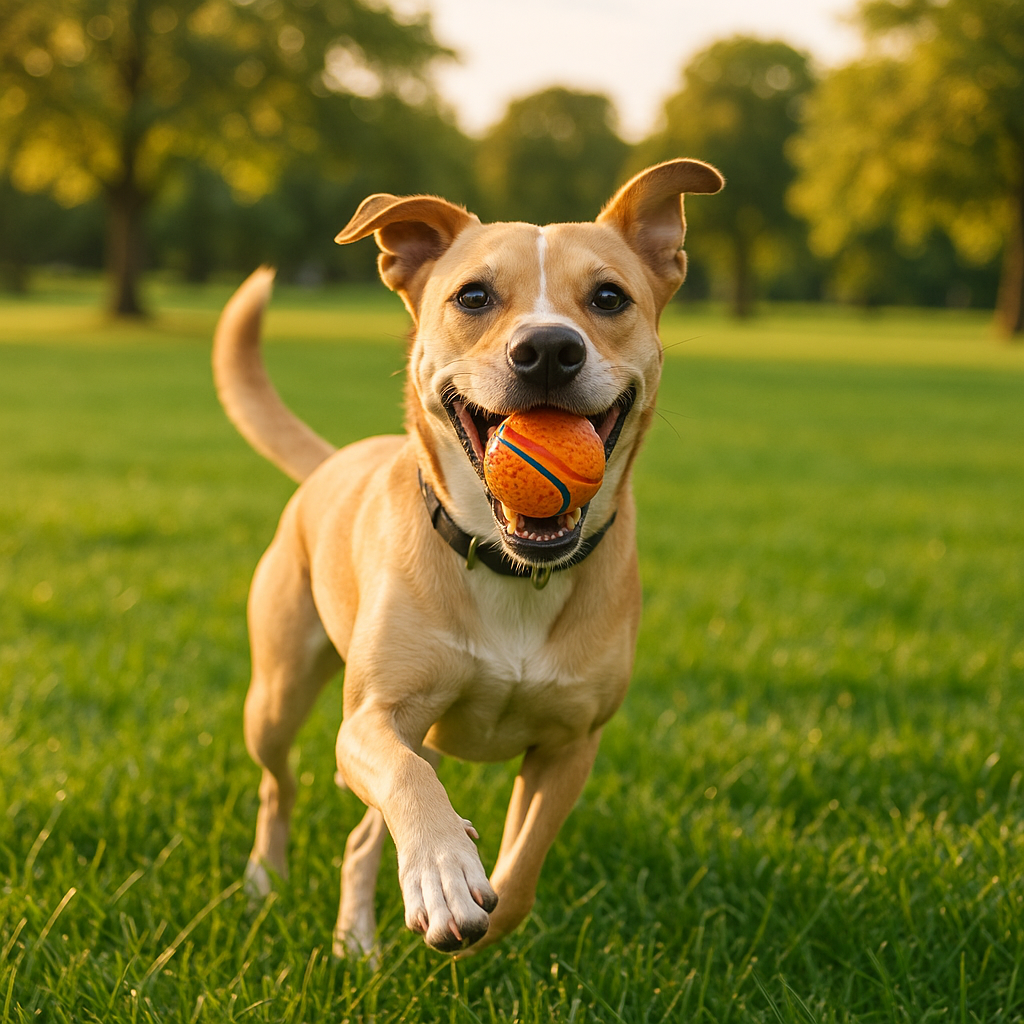 Happy and playful. Like every dog, He wants to eat the mail person.